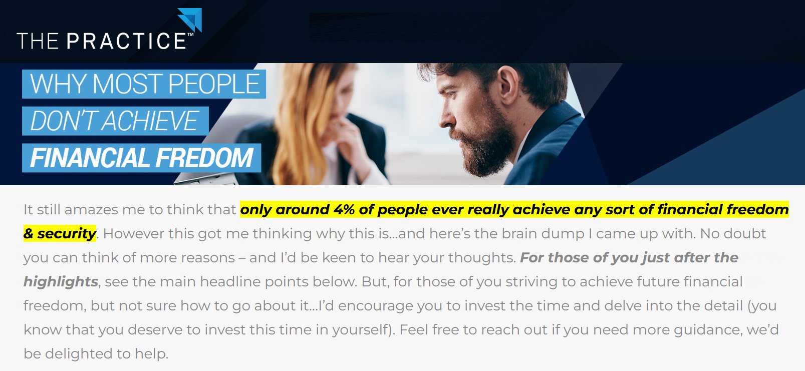 Статистика показує, що доволі малий відсоток інвесторів досягає рівня фінансової свободи. І це збоку виглядає дивним, особливо в час, коли є вільний доступ до якісних знань по інвестуванню, а доступ до інвестиційних інструментів простіший ніж будь коли раніше.