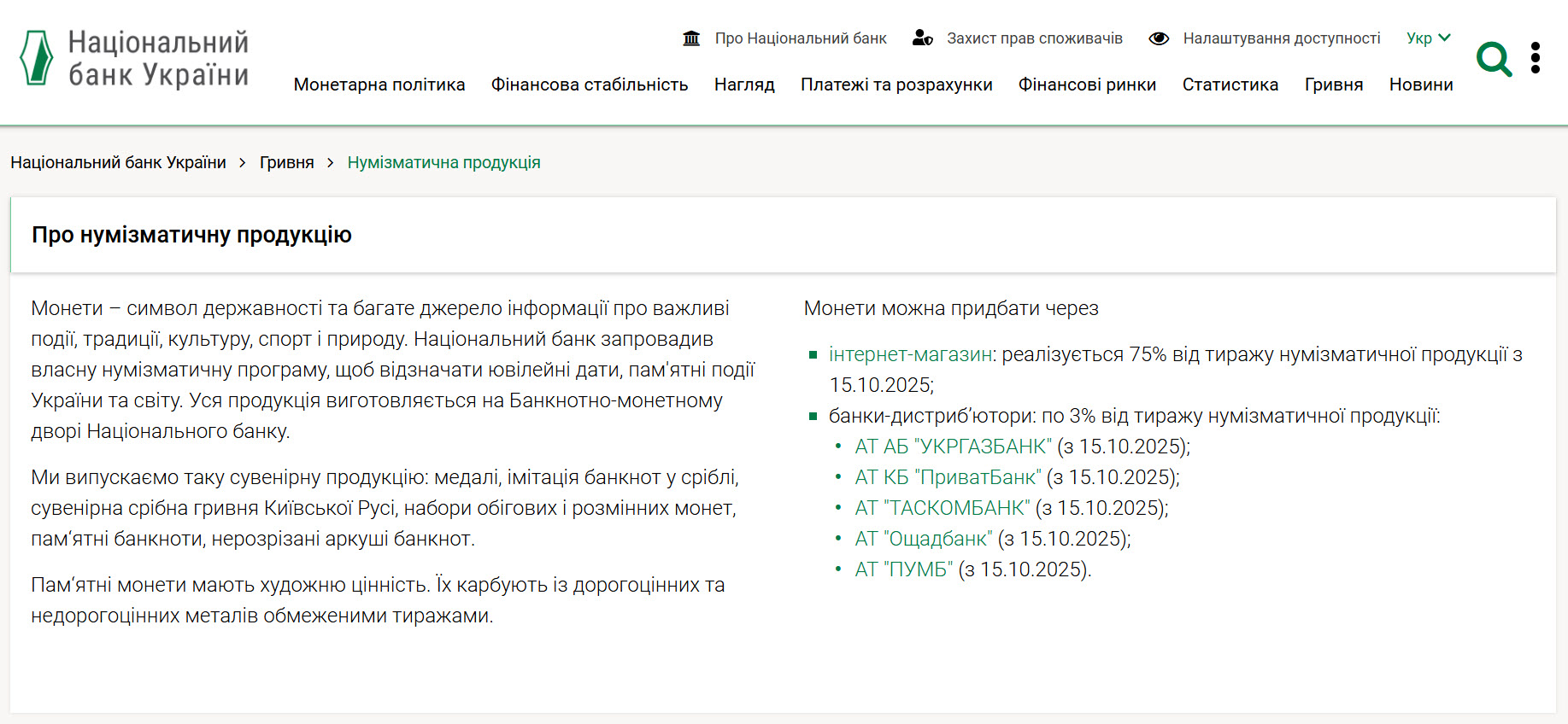 Тобто, на сайті інтернет магазину НБУ можна придбати монети, і вони поштою надішлють ваше придбання. Загалом, 75% усього тиражу продається саме через магазин НБУ, і саме тут завжди присутня найкраща ціна.