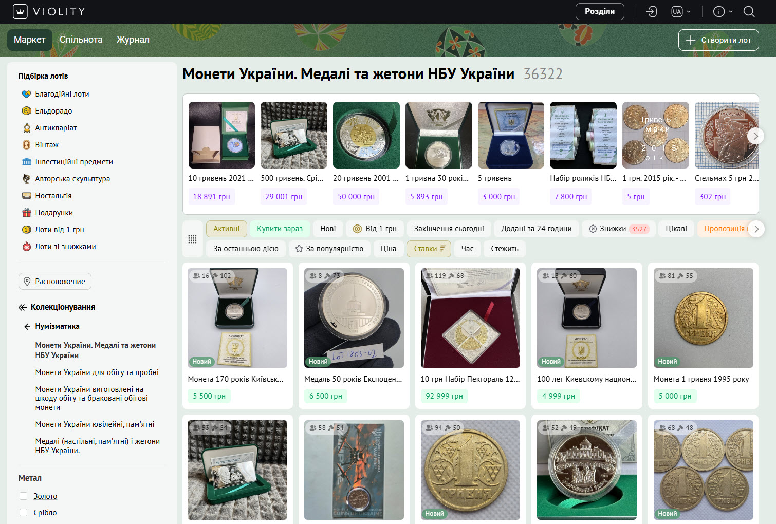 Але найбільшим усе одно є вторинний ринок. Абсолютним лідером в Україні є маркетплейс Віоліті – який фактично в основному і спеціалізується на предметах колекціонування, антикваріаті і т.п. Але, ви можете зустріти монети в продажі на таких майданчиках як пром, олх і схожих. Тобто, вторинний ринок доволі розвинутий. Проте, важливо враховувати, що на вторинному ринку інвестор бере на себе ризики оцінки стану та автентичності.