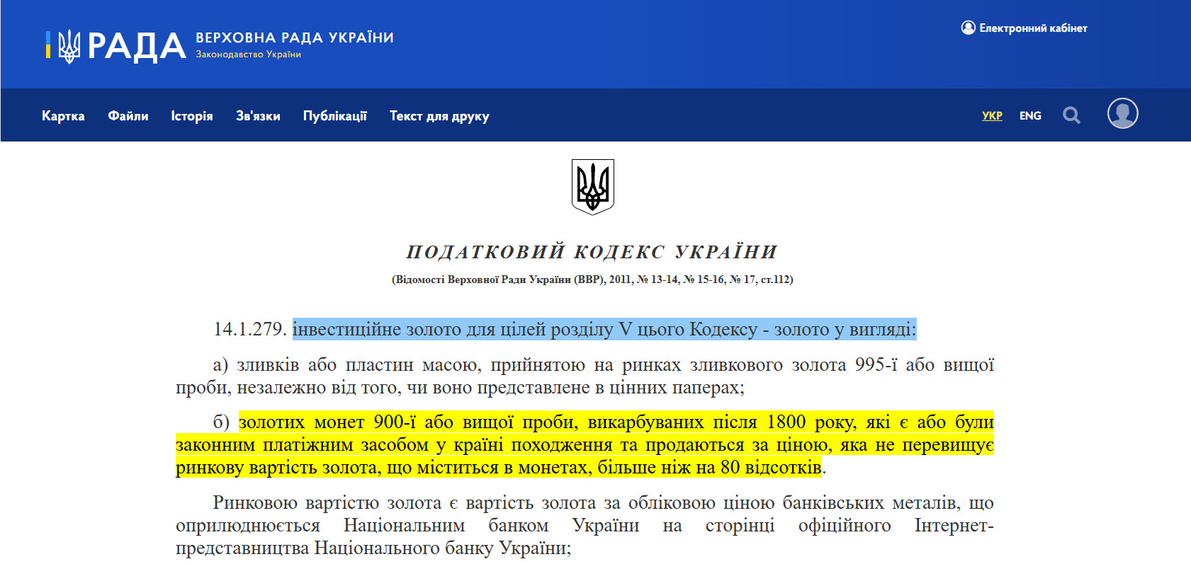 І щоби не було сумнівів, що монети також попадають у цей перелік, у цьому ж податковому кодексі присутня стаття 14.1.279, яка регулює поняття інвестиційного золота. В пункті (б) ви бачите чіткі характеристики таких монет, щоби вони вважалися інвестиційними. І вимоги до монет доволі демократичні, дуже багато монет, включаючи колекційні, по цим нормам можна вважати інвестиційним золотом.