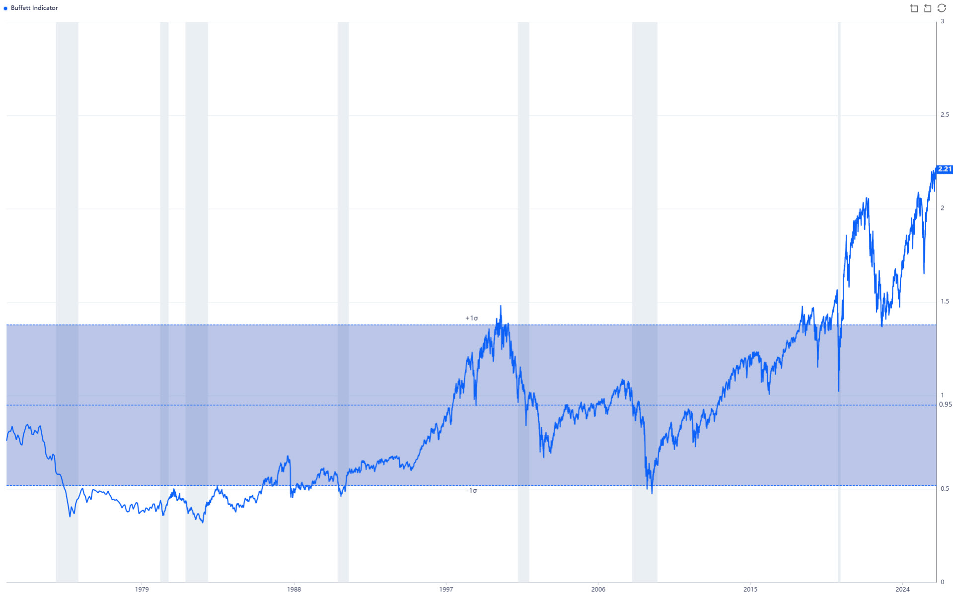 І таких індикаторів, що показують переоцінку є безліч, наприклад то й же індикатор Баффета, який дивиться на ринок із зовсім іншої сторони, показує також історичну переоцінку. Тобто, переоцінка ринку є, і це факт.