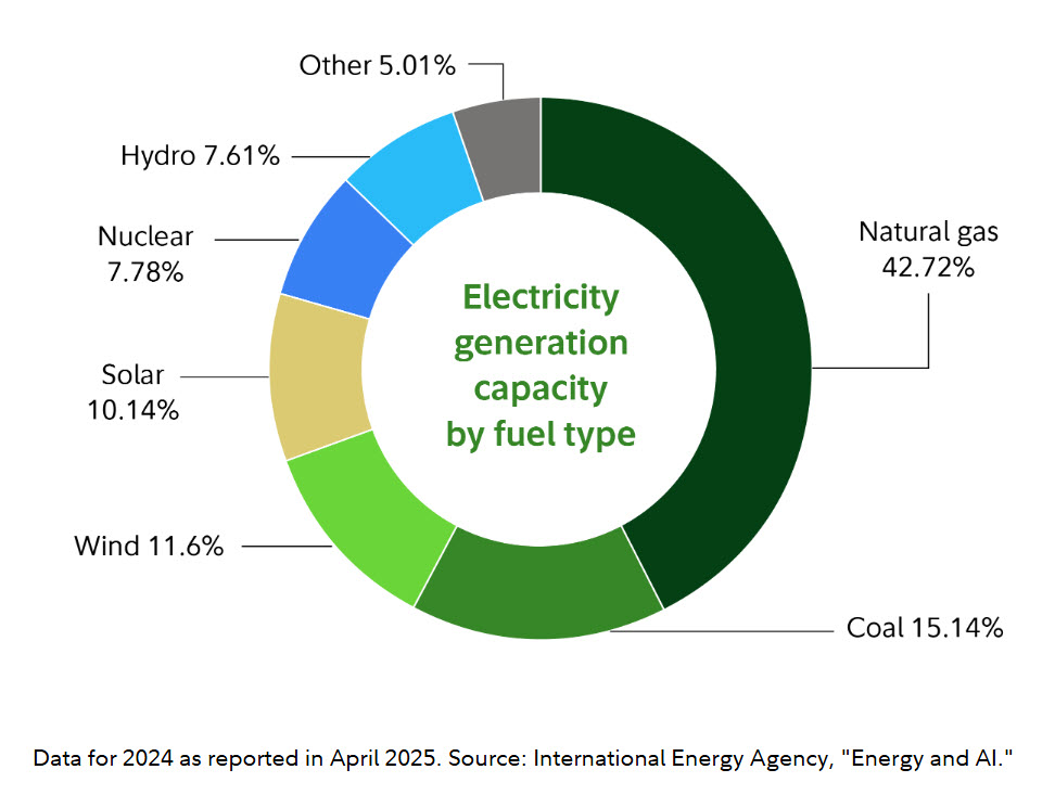 Тому, потрібно дивитися у іншу сторону, де є можливості пов’язані із ШІ. По-перше – це енергетика. Розвиток штучного інтелекту стикається з жорстким фізичним обмеженням: енергопостачанням. Дата-центри, необхідні для навчання та роботи моделей нового покоління, потребують безпрецедентних обсягів електроенергії. За оцінками, споживання електроенергії дата-центрами в США подвоїться до 2030 року.