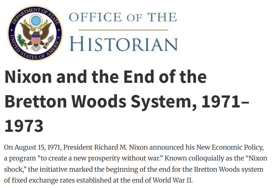 І уже 15 серпня 1971 року Ніксон оголосив про закриття «золотого вікна», і зупинив конвертацію долара в золото. Це рішення, відоме як «шок Ніксона», фактично перетворило долар на фіатну валюту. Світ перейшов плаваючих курсів та високої інфляції, а статус долара як світової резервної валюти опинився під великим питанням.