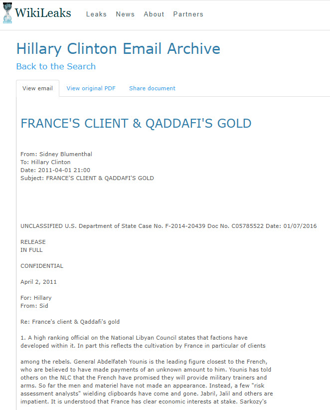 І у 2011 році за підтримки США почалася інтервенція НАТО. Хілларі Клінтон (згідно з оприлюдненим листуванням) була занепокоєна саме лівійськими золотими запасами, які могли похитнути позиції долара в Африці. Результат усім відомий.