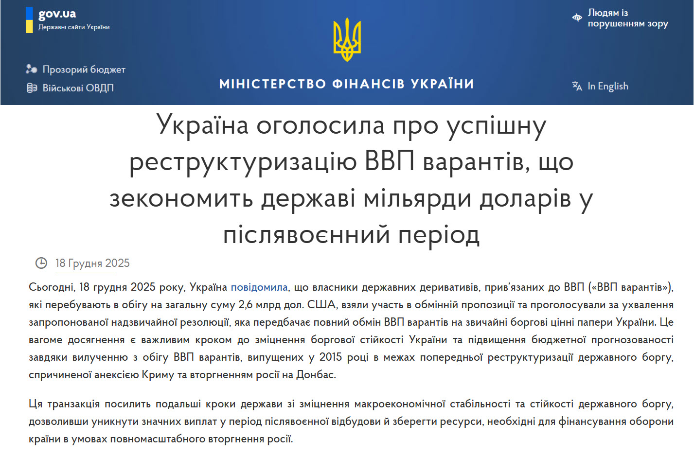 Тому, Міністерство фінансів України реалізувало стратегію управління державним боргом, метою якої було зменшення невизначеності майбутніх виплат. А ВВП-варанти були визнані “токсичним” інструментом для бюджетної стабільності країни, із чим, я особисто, повністю згідний.
