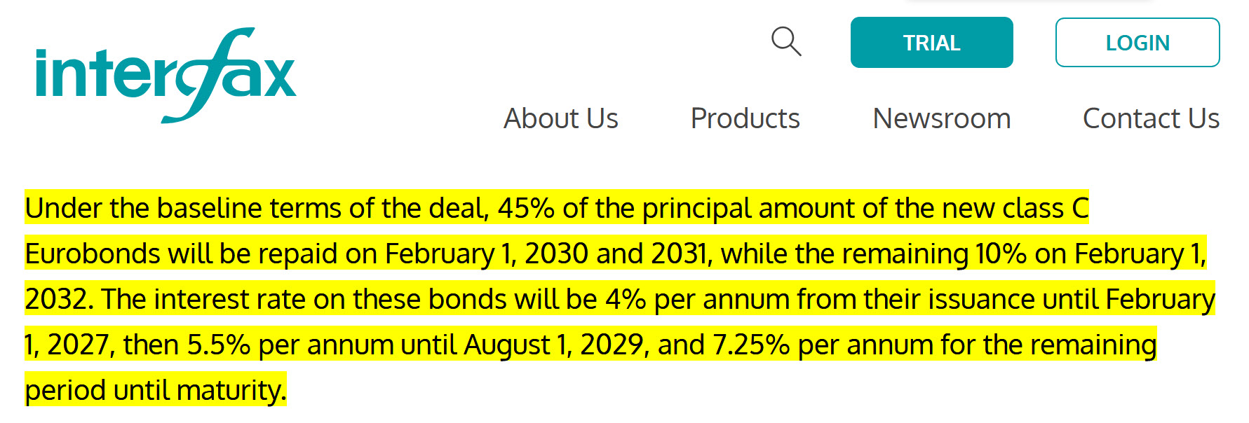 Результатом реструктуризації стала поява на ринку нового класу активів – облігацій серії C з погашенням у 2032 році. Це не стандартні облігації, а амортизаційні, вони передбачають поетапне погашення тіла кредиту – 45% номіналу виплачується у лютому 2030 року, наступні 45% номіналу – в лютому 2031 року і останні 10% – в лютому 2032 року.
