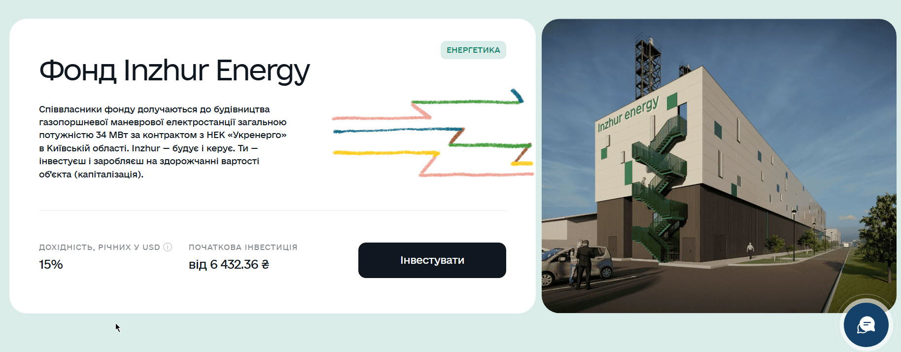 Найбільш відомим представником є Інжур Енерджі. Якщо коротко, то – це фонд спільного інвестування (ПІФ), який будує мережу децентралізованої генерації (газопоршневі електростанції).