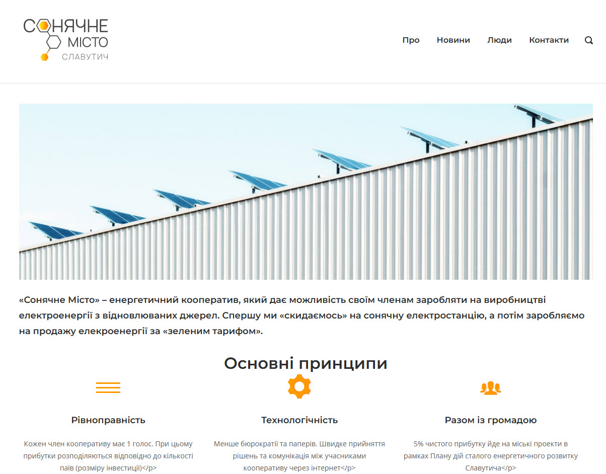 Розвивається також така течія, як енергетичні кооперативи. Прикладом такого кооперативу є “Сонячне Місто” у Славутичі. Механіка тут доволі проста – інвестори купують паї в кооперативі, який будує СЕС на муніципальних дахах. А прибуток розподіляється пропорційно внескам.