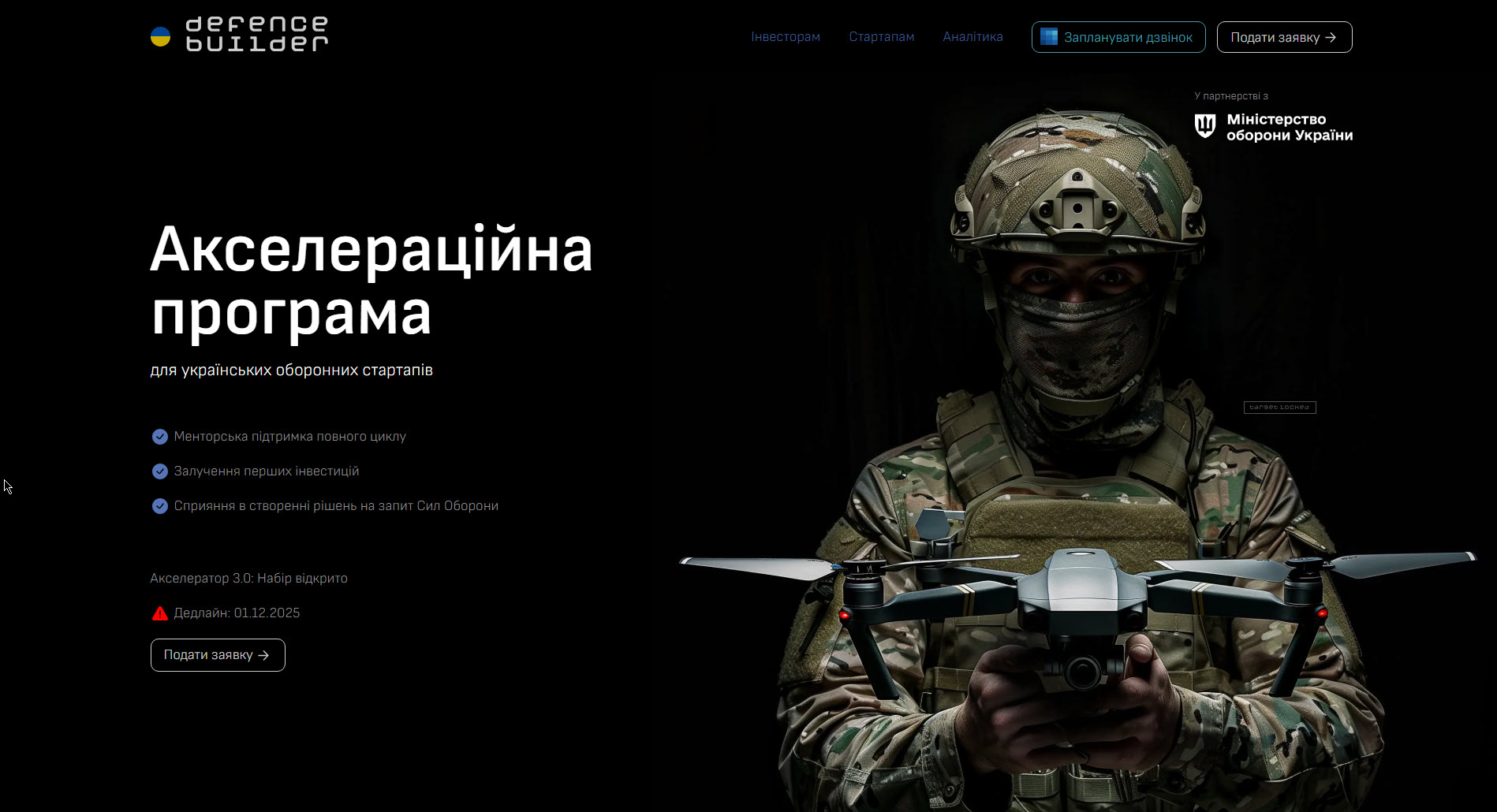 Із доступних пропозицій можна поглянути на Defence Builder. Ця платформа дозволяє інвестувати суми від $1,000. Вони проводять повний аудит (due diligence) стартапів, перевіряють їхню ефективність на фронті та структурують угоду.